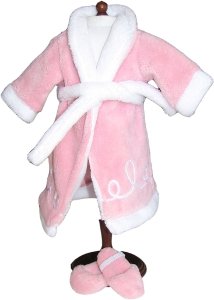 This is the softest robe we have ever seen which is designed to fit your American Girl ® Doll. It is make from fuzzy pink chenille with white trim and the cutest matching doll slippers you have seen!